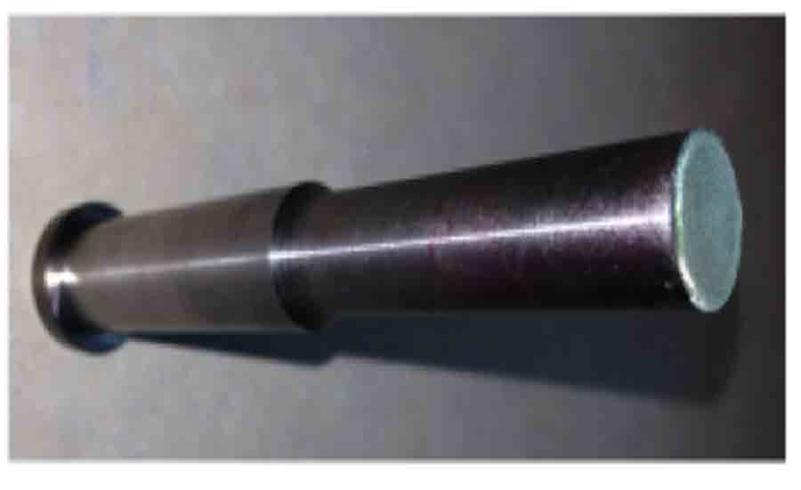 The punch1 used for this case study was originally made out of a tool steel with a hardness of 54 HRC [1, 2], and in order to increase its service life, a higher carbon content tool steel−to improve wear resistance and even further the toughness−was deposited by DMD. A complete part body, indicating the top face area where the high carbon steel deposition was made, is shown in Figure 2. Due to the nature of this process, the surface roughness usually is as good as a sand casting; therefore, depending on the specification of the part, some finishing can be done afterward.