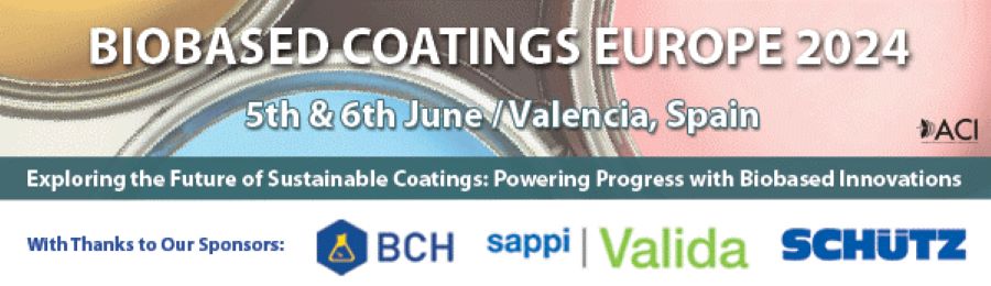Returning for its 5th edition next year, the Bio-Based Coatings Europe 2024 live conference will once again bring together senior executives and experts from the coatings industry, including bio-based material producers, paint and coatings specialists, resin, binder, pigments and additive companies, solution providers, consultants, regulatory and policy officers, and technology providers to discuss the latest challenges and developments within the industry and benefit from networking opportunities. The event will take place in Valencia, Spain, June 5-6, 2024.