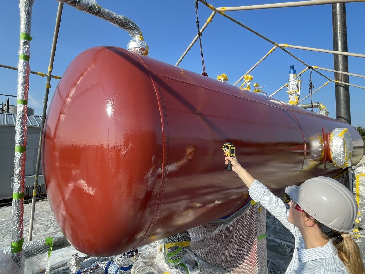 A heater treater, primed with 100% solids Heat-Flex ACE – delivering outstanding performance in high heat, atmospheric and corrosion under insulation environments – and coated with Heat-Flex AEB, during a successful summer application. Image courtesy of Sherwin-Williams.