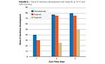 Persoz and Shore D hardness development were evaluated according to ASTM D4366 and ASTM D2240 respectively. Figure 2 illustrates the Phenalkamide develops Persoz hardness faster than PolyA#1 at room and low temperatures. This behavior is expected from phenalkamides due to the combination of their high molecular weight and high functionality. In the case of some curing agents, hardness is significantly affected by moisture at lower temperatures. Figure 3 shows the Phenalkamide exhibited faster Shore D hardness development than competitive technologies at 10 °C and 92% relative humidity. The hydrophobicity of CNSL derivatives coupled with the high reactivity of the solvent-free Phenalkamide ensure proper cure even at high humidity and low-temperature conditions.