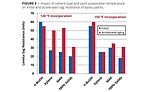 For this particular RA, the results shown in Figure 3 indicate that it produces the strongest anti-sag performance with butanol (BuOH) as the paint solvent at both incorporation temperatures. The initial performance is reasonably stable after accelerated aging. However, when methyl amyl ketone (MAK) or xylene is the paint solvent, the initial sag performance is greatly reduced relative to the BuOH. Based on the results, both the solvent type and the paint processing temperature have a strong influence on the RA sag resistance and accelerated aged performance stability. The removal of the solvent altogether for the 100%-solids coating reduced the sag resistance performance of the RA for both paint mixing temperatures at which they were prepared. These results are specific to this particular RA, paint process and paint formula. An idealized RA would be one that was robust and works well for a wide variety of formulas, processes and temperatures.