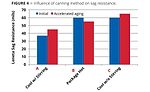 Leneta anti-sag test results for this experiment are shown in Figure 5. These results demonstrate the low initial performance of the commercially available RAs in this coating system with these moderate-shear mixing conditions and with no added heat. Upon accelerated aging, those RAs appear to activate in the can and produce sag resistance results that are much different than initially right after production. This much rheological instability is significant and is a major production issue for paint manufacturers.