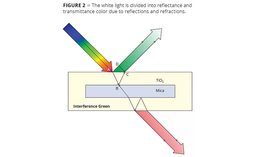 Interference pigments are among the most optically sophisticated pigments. Unlike colored pigments that absorb some of the incident light and metallic pigments that reflect the incident light, interference pigments involve superimposed light waves that are shifted together due to reflections and refractions, thereby causing strengthening or weakening of the resulting light wave. Various factors such as the layout of the pigment, its application and the lighting make for optimum conditions.