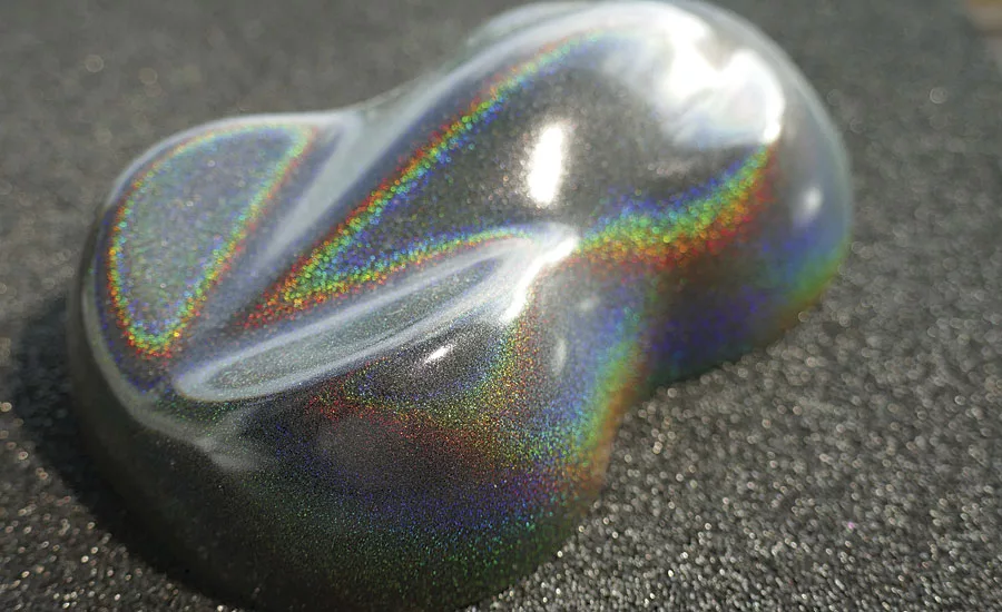 Polychromatic pigments are inherently silver-white to silver-gray from their base color. The rainbow effect occurs most clearly with these neutral pigments. Admixtures of color pigments suppress the rainbow partially or even completely, so that in principle some preliminary considerations are necessary:
