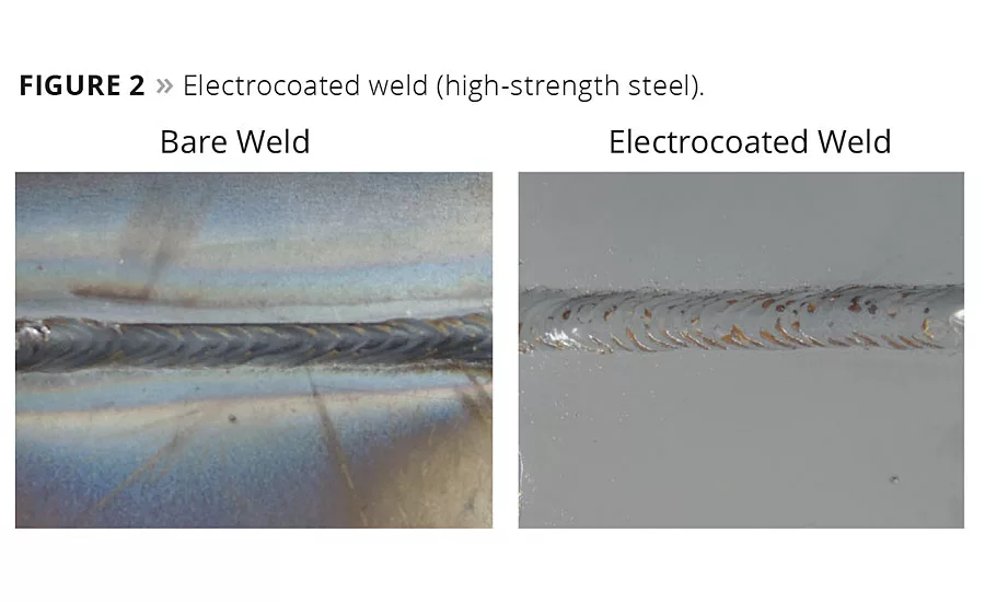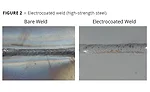 Coatings can have a great impact on these global needs. Lightweight substrates will require new ways to mitigate corrosion. Vehicles will require new joining methods for composites, and dissimilar metals will need to be isolated to avoid galvanic corrosion. The corrosion requirements for new fasteners will be more difficult to achieve. Even carbon fiber-reinforced composites can cause galvanic corrosion if they are not isolated from other metals.17 The coating of advanced high-strength steel (which enables light weighting by down-gauging the metal) presents corrosion challenges as a result of the silicon found in some alloys. Silicon dioxide formed during welding can interfere with coating deposition by electrodeposition (Figure 2).
