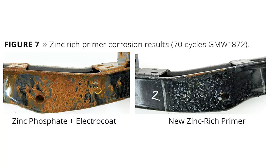 Corrosion on pipes carrying petroleum and other chemicals, and on infrastructure in severe environments like offshore oil rigs and deep wells, could be improved as failure of these assets cannot be tolerated. Vehicle underbody corrosion has been a problem at times. As mentioned previously, coatings with improved corrosion resistance are needed in order to enable the use of thinner metal and thus allow light weighting. This is a challenge for the whole industry. Improved performance is possible as demonstrated by new zinc-rich primer corrosion results (Figure 7).