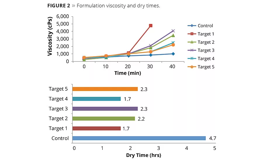 Our formulation experiments demonstrate that polyaspartic coatings can achieve optimal drying performance that is walk-ready within a day or less for faster return to service. Additionally, the work time of these polyaspartic formulations is comparable to commercially available systems but at higher solids, which is an important property for improving application.