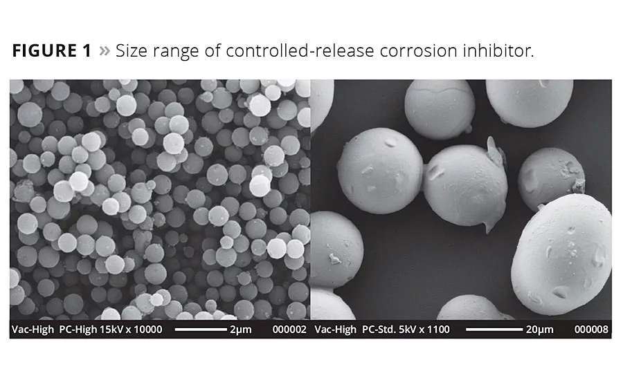 The answer to these questions is “yes”, by encapsulating corrosion inhibitors inside porous ceramic particles that will provide protection to the payload and sustained release of the corrosion inhibitors. Inhibispheres® are such controlled-release corrosion inhibitors (CRCI) - designed to work in all kinds of coatings to inhibit corrosion on aluminum and steel. These particles are not capsules, but have a matrix structure with the actives anchored inside the matrix pores, with loadings of actives typically 10-25% by weight. The particles are mechanically and chemically resistant. They can withstand grinding, milling and extrusion processes with no deleterious effects on the properties of either the particle, the active or the coating. The sequestration of the active inside the porous ceramic matrix enables the incorporation of actives that would normally be incompatible with the paint in their un-encapsulated form. The corrosion-inhibiting active is released in a controlled manner whenever water penetrates the coating due to immersion, condensation or mechanical damage. The actives come in a range of organic (metal-free system) and organo-metallic inhibitors specially tailored to the metal substrate and with a controlled and defined release rate for quick action on exposed surfaces or the extension of coating life when used either alone or in conjunction with traditional corrosion inhibitors (zinc dust/zinc phosphate). The materials come in a range of sizes from 100 nm-100 micron (Figure 1).