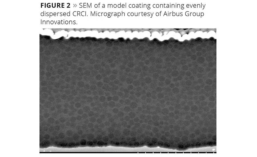 The inclusion of the CRCI into the coating had no effect on the adhesion of the coating to the substrate. Testing of the material with crosshatch scribe according to ASTM D3359 gave no indication of any reduction in adhesion to the substrate surface due the presence of the matrix-encapsulated materials.8 This would be expected, as the matrix is essentially silica.