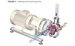 The dispersion takes place in the relatively small rotor-stator-rotor passage under maximum vacuum, turbulence and shear. During the shear zone passage the effective liquid surface is increased some million times. This way the available liquid surface during powder wetting is even larger than the huge powder surface itself. This is the ideal precondition for 100% wetting. Every single particle is wetted completely before it leaves the shear zone (Figure 4).