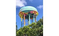 Among the numerous award entries, two water tank restoration projects stood out as runners-up for the 2017 Sherwin-Williams Impact Award. First, UCL Inc. (Cincinnati, Ohio) and Dixon Engineering, Inc. (Lake Odessa, Michigan) teamed up to recoat a multi-leg elevated water tower for the City of Findlay, Ohio. The two-million-gallon tower’s new patriotic design features a red, white and blue design resembling an American flag, complete with stars and lettering stating, “Findlay Salutes Veterans.” For the project, UCL applied a primer coat of Macropoxy 646 PW, followed by two coats of Acrolon Ultra for the white coloring and Fluorokem™ HS for the red and blue coloring.