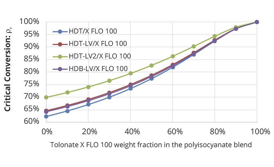 Hence, the potential impact of the reactive diluent in a polyisocyanate blend on the gel time of the system can be estimated, as shown in Figure 9.