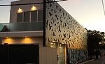 A dense, floral pattern is intricately fabricated into the full expanse of the hanging exterior, and reveals glimpses of the two-story home’s stuccoed and glazed inner wall. To add even further impact and a multi-layer dimension to the design, the façade was extended and hung nine inches beyond the home’s inner structure.