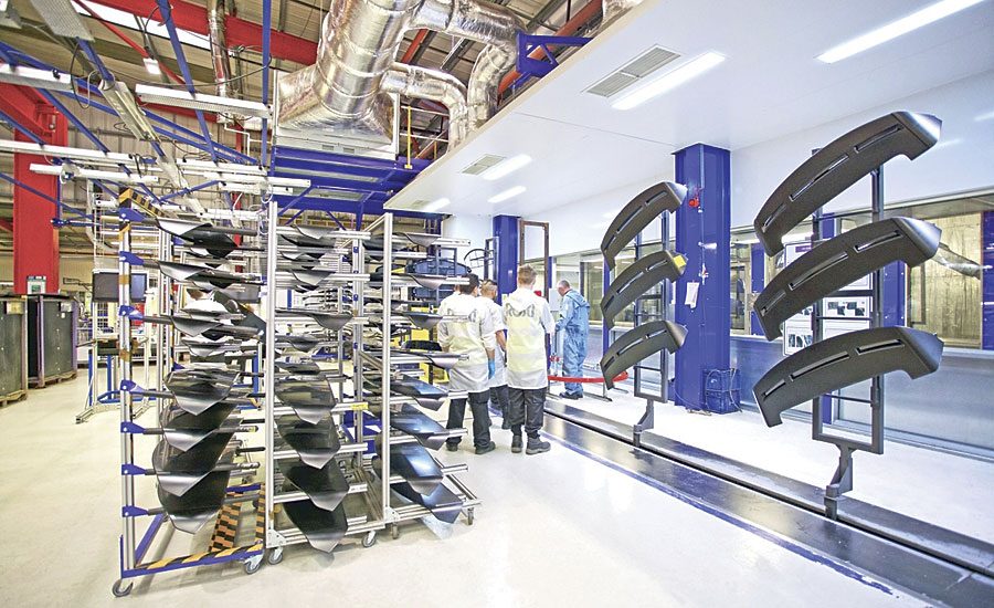 As with metallic components, plastic components have long been cleaned with powerwash systems prior to painting. The components first pass through a cleaning step with a mostly alkaline medium, followed by several rinsing zones, an adhesive water dryer and a cooling zone. Cleaning not only takes up a lot of production space, but also consumes large quantities of resources. Furthermore, plastic components behave differently from their metal counterparts. The heat introduced during the cleaning step causes the plastic parts to expand, with the result that water is stored. During the drying process, the parts are heated once again. This could be one reason why some of the ingredients used to make the plastic, such as separating agents, additives or fillers, which have migrated upwards from deeper layers, can later be found on the cleaned surface and impair paint adhesion.