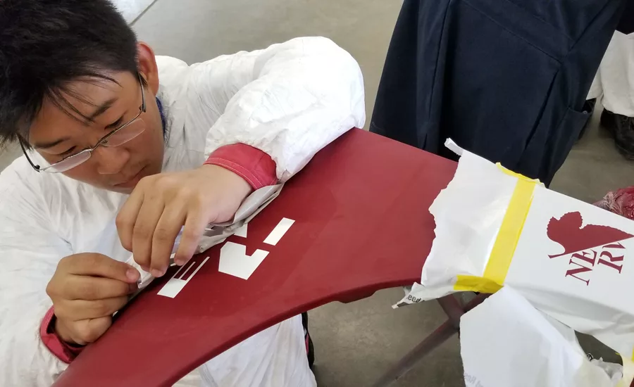 BASF has been a long-time supporter of the program, providing R-M Onyx paint and materials for the students to use, along with instruction on advanced and custom paint techniques. Each student received their own fender to paint and take with them back to Japan.