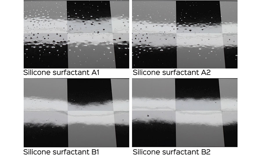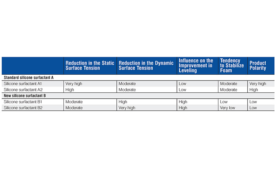• In addition, the new silicone surfactants contribute towards a considerable improvement in the leveling properties, and tend not to stabilize foam within the coating production and application.