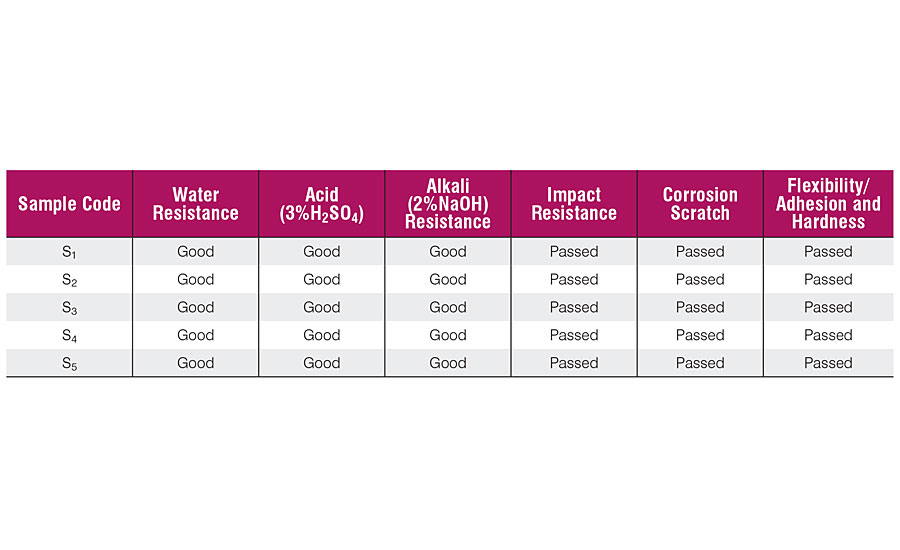 Films were also tested against acid resistance, alkali resistance, corrosion scratch test, adhesion and hardness as per standard test methods. For corrosion scratch test, an artificial sea water sample was prepared by dissolving chemicals in 1 liter of water (Table 1).