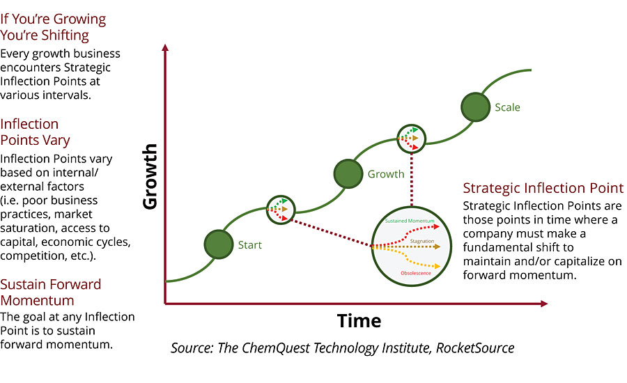 That tapering-off point is also a turning point – a slight decline in growth may quickly accelerate generating negative growth. At this juncture innovating afresh to stay relevant can initiate a new upward growth curve (a true inflection point).