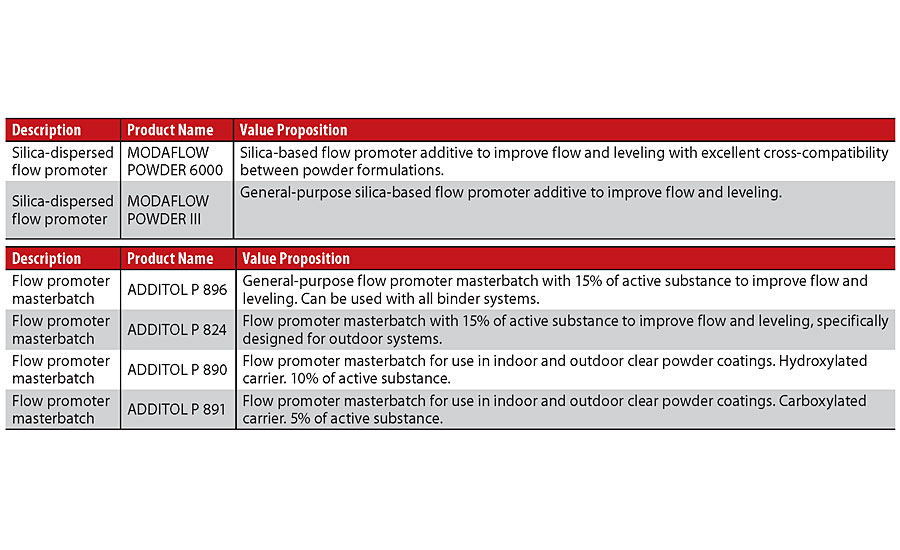 In the powder coatings sector, flow promoters are divided into two main categories depending on the solid carrier used for dispersing the liquid active substance, the additives dispersed on silica and those dispersed on polyester resin (so called masterbatch). Both consist of a liquid acrylic additive, which is the active substance dispersed on a solid matrix that can be either silica powder or polyester resins. These two alternative technologies present certain differences linked to the process conditions for the industrial production of powder coatings and to the final characteristics of the coating film (Table 1).
