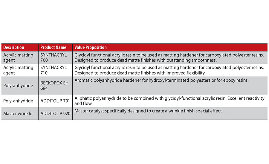 Other special products are usually components of the paint formulation that help obtain special finishes such as a matte finish, textured finish or wrinkle effect (Figure 3).
