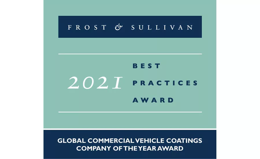 GLEN MILLS, PA — Frost & Sullivan recently named Axalta the 2021 Global Commercial Vehicle Coatings Company of the Year. The annual Best Practices award recognizes Axalta for developing innovative coatings that address OEMs' evolving needs in designing lighter-weight vehicles and exterior components and for its leadership in innovation and the commercialization of highly efficient coating solutions.