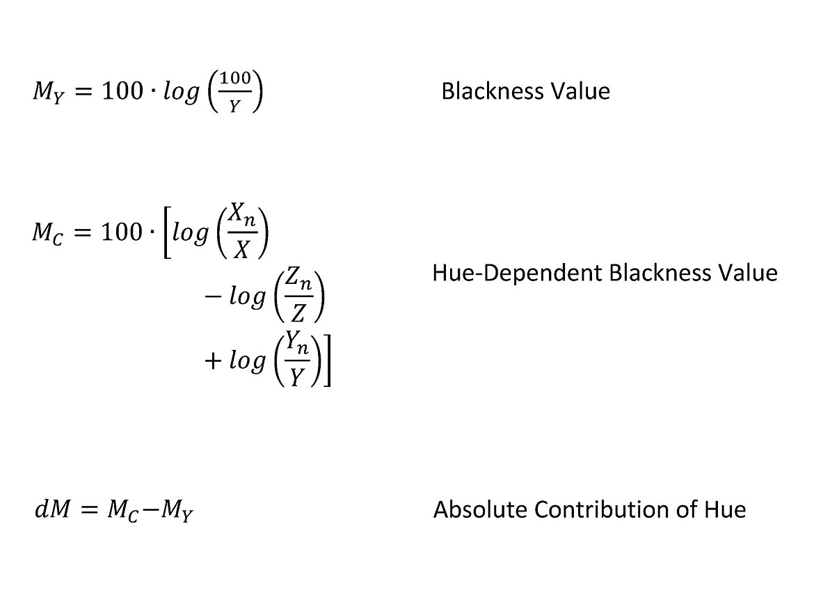 Blackness Values MC, MY, dM