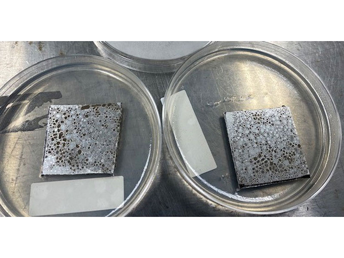 The product addresses problems that manufacturers face when incorporating anti-microbials into their coatings, and has advantages over traditional technologies. In regards to anti-bacterial and anti-fungal efficacy, the product inhibits bacterial growth by up to 99.99%, preventing mold and mildew growth on treated surfaces for the lifetime of the coating. Polyurethane and acrylic coatings containing the product have been tested for both Gram-negative (E. coli) and Gram-positive (Staphylococcus spp.) bacteria, and results showed that the untreated materials were unable to exceed the desired >2 log reduction (Figure 2). LapisShield also remains constantly active in the coating, working around the clock to inhibit microbial growth even between cleans.