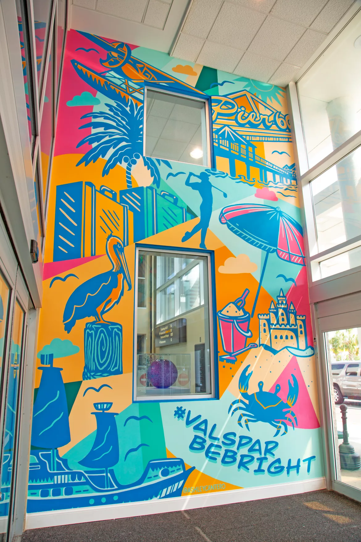 “The St. Pete-Clearwater International Airport is honored to showcase local talent, like Ashley’s, and supports Valspar and the Be Bright initiative,” said Michele Routh, public relations director, St. Pete-Clearwater International Airport. “This mural will uplift visitors for years to come.”