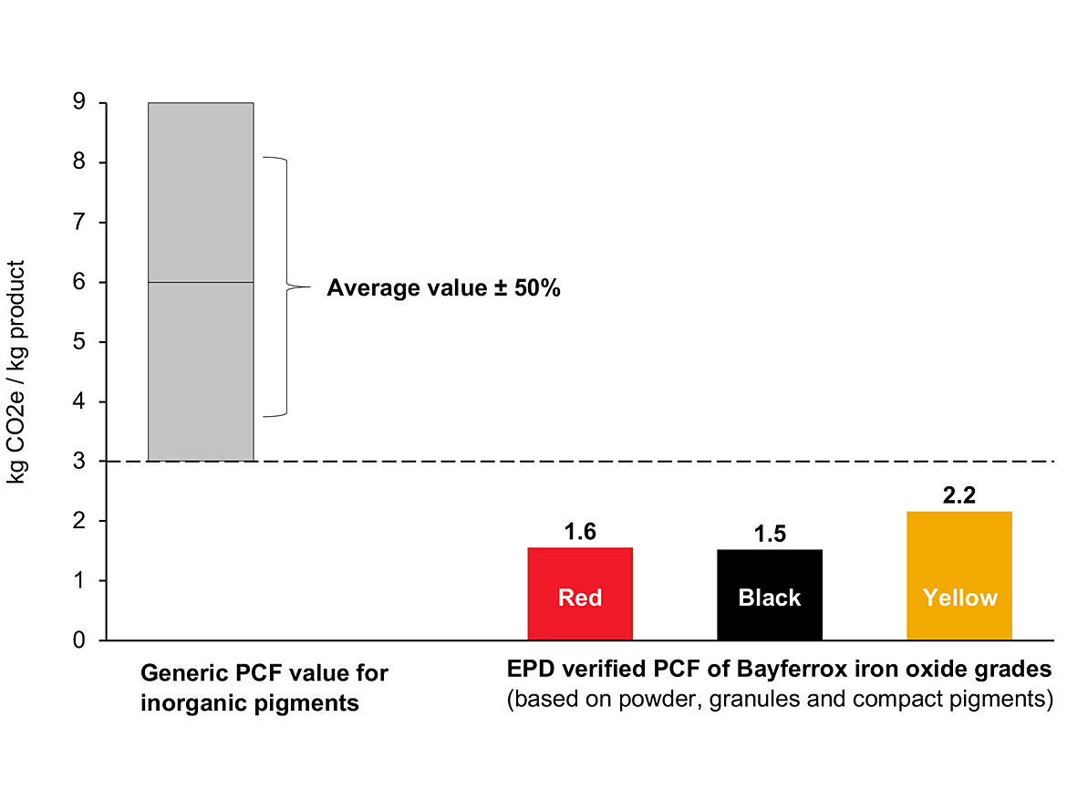 Schmitt: As described, EPDs provide a credible and reliable basis for buyers to compare products from different raw material suppliers. Here is an example: An EPD provides a holistic assessment of products with regard to all environmental impacts. In terms of the raw materials used in particular, the primary focus is currently on the product carbon footprint (PCF). Our products for which an EPD is currently available have a PCF, as confirmed by an independent auditor, of around 1.5-2.5 kg of CO2 equivalent per kilogram of product. This figure can now be compared with that of other product alternatives, provided that an EPD or at least a certified PCF is available. If this is not the case, generic figures have to be used that often reflect a non-specific mean value and can also be prone to major errors. For inorganic pigments, this mean value was quoted some years ago in a publication from a European association of the mineral paint industry as being roughly 6 kg of CO2 equivalent per kilogram of product, ±50% depending on the manufacturing process.