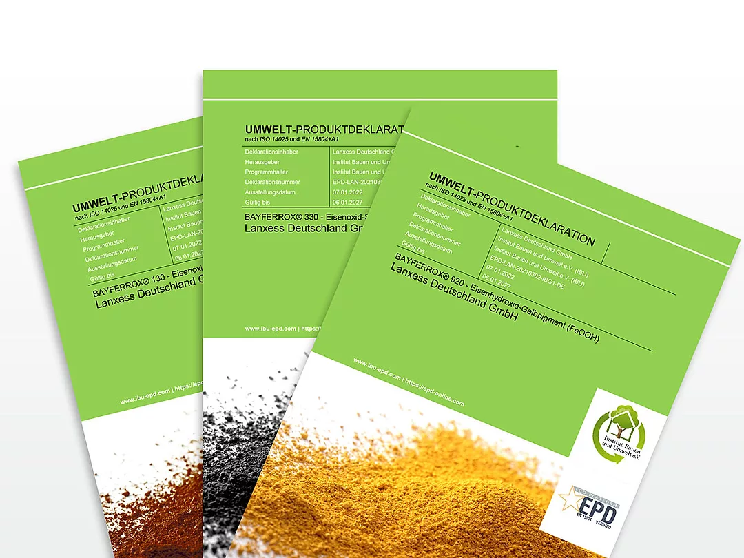 After all, quantifying environmental impact in the form of EPDs on the basis of uniform assessment parameters gives raw material manufacturers that, like LANXESS, continuously invest in environmentally friendly production processes a competitive advantage. This also includes the transition toward energy-efficient processes. The chemical synthesis of iron-oxide pigments, for example, is inherently energy intensive. Looking to the future, the Inorganic Pigments business unit at LANXESS has laid out a road map for continuously lowering the carbon footprint of its pigments. The aim is to reduce carbon emissions at our main production site in Germany by around 50% by 2030 thanks to new technologies and switching to alternative energy sources such as green energy and hydrogen.
