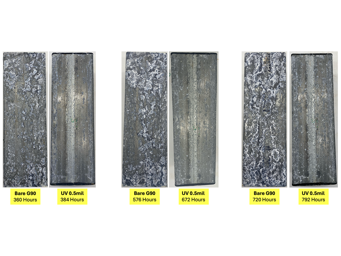 In the case for even more corrosion protection, the coating thickness can be increased to 0.8-1.0 mils. This will provide additional white rust protection for extreme outdoor exposure, without slowing down production speed.
