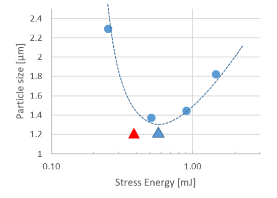 After 2,000 hours, the average bead size in the mill is approximately 30% smaller than that of the new beads. Topping up has not maintained the optimum bead size, which significantly impacts grind quality and mill efficiency. Beads must provide a minimum stress intensity to break target particles, as illustrated in Figure 3.