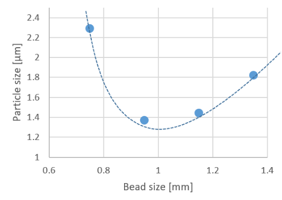 Bead size selection is influenced by various factors, including the target size reduction ratio and the formulation’s rheological properties. For each process, there will be an optimum bead size—1 mm in the example detailed in Figure 2.