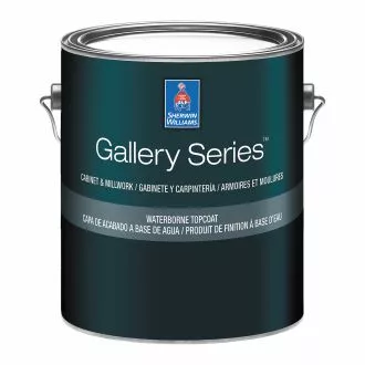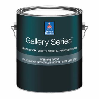 Cabinetry: Sherwin-Williams Gallery Series™ waterborne topcoat provides a durable, factory-like finish for cabinets, trim, and millwork. Designed for professional spray application, it dries in 30 minutes and is ready for recoating in 45 minutes.