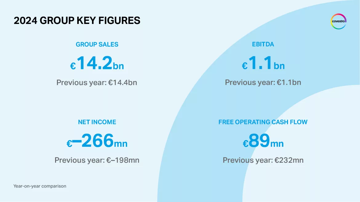 Covestro announced its fiscal 2024 results, reporting increased volumes sold despite persistent market challenges. Group sales declined by 1.4% to EUR 14.2 billion, mainly due to lower selling prices. EBITDA remained stable at EUR 1.1 billion, down 0.8% from the previous year, while free operating cash flow fell to EUR 89 million. Net income stood at EUR –266 million, and greenhouse gas emissions decreased to 4.7 million metric tons of CO₂ equivalents, largely due to lower emission factors at key production sites.
