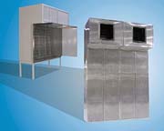 Series 1532 Inflow dust-containment cabinets are constructed of painted steel for compatibility with typical cleanroom environments. With the blower located on top of the unit, the system draws air into a pair of wall-mounted filters to be filtered and discharged back into the workspace. The HEPA filter system consists of two parts - the absolute HEPA filter and a flexible duct - to form a modular component. Series 1532 units also provide two stages of filtering before the HEPA filter. The first stage consists of disposable, non-woven framed fiberglass media, while the second is an optional charcoal filter. The cabinets come in a variety of sizes and styles to suit specific application requirements, with a number of custom options available. Call 800/423.9728.