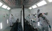 Most paint machines have three bells for each side of the car and three for the top, for a total of nine bells for painting passenger cars. Large vehicles like trucks require four bells per station, for a total of 12. A typical booth might have one station for primer, one for basecoat and two others for clearcoat. Some installations also employ robotic sprayers for detailed or special paint jobs.