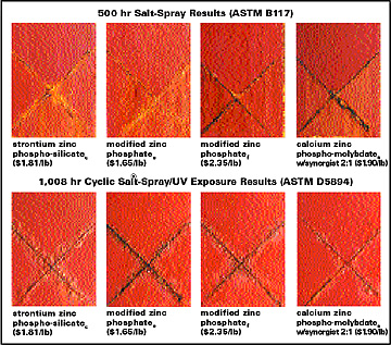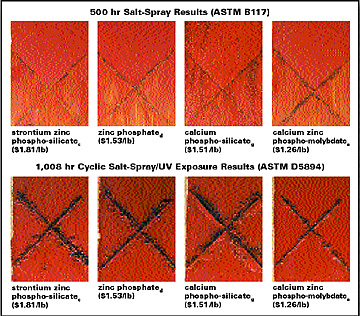 - Molybdate corrosion inhibitors are effective in both conventional salt-spray tests and the newer cyclic salt-spray/UV exposure tests (e.g., ASTM D 5894) being used by the industry.