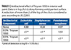 Troy recently discovered how to convert the well-known antibacterial substance 1,2-benzisothiazolin-3-one into a slow-release form, which allows for its use in antibacterial paints. This product is named Troysan 1050. Research has shown interior paints containing this compound demonstrate efficacy against gram-positive and gram-negative bacteria, including Escherichia coli, Staphylococcus aureus and the difficult to control Pseudomonas aeruginosa (using the Japanese Standard test JIS Z2801 or an agar-diffusion type test like SNV195120). Table 1 indicates the excellent range of activity shown in an interior wall paint based on a styrene-acrylic binder.Troysan 1050 has recently been approved by the U.S. EPA for use in preventing the growth of bacteria on protective coatings.
