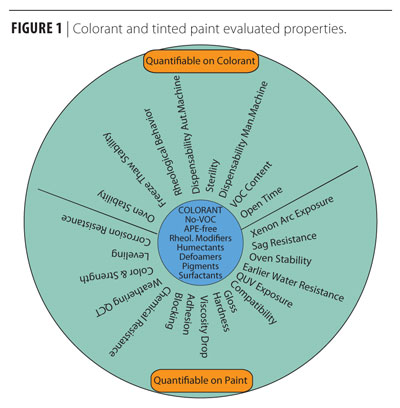 - Quantifiable on colorant – The inherent properties of the colorant such as aging stability, freeze-thaw stability, dispensability, VOC, etc.