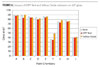 The ability for a coating to not stick to itself upon contact when pressure is applied is an important requirement for industrial applications. In order to evaluate how the next-generation colorants would affect the blocking resistance of the paint, the ASTM D 4946-89 method was used. Colorant (10%) was added to the bases and applied to the substrate with a 6 mil bird applicator. The specimen was dried for 7 days and placed face to face in the oven at 50 °C, with a pressure of 1.8 psi over the specimen. After 30 minutes, the specimens were removed from the oven, cooled for 30 minutes at room temperature and peeled apart. Chroma-Chem® 897 colorants did not reduce and in some cases improved the blocking resistance of paint bases, as shown in Figure 6.