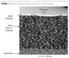 One key design feature of these new hybrid coatings is a novel morphology consisting of two phases; a continuous inorganic phase with a discreet, regular and well-defined dispersed organic phase. Due to the very thin (~1 µm) application and complex composition of the novel, hybrid coating, it is very difficult to image with either the visible microscope or the scanning electron microscope (SEM). Low-vacuum SEM work does give a nondescript topographical image of the coating similar to other amorphous metal coatings at the surface, but no details of the coating structure as it relates to performance can be deciphered.