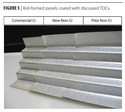 A new non-chrome coating for Galvalume and galvanized substrates has the following design features: