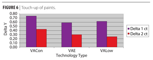 Table 1 summarizes performance properties across the three categories. If freeze thaw is an important performance feature, conventional vinyl acrylic technology is the best choice today for achieving this property without substantial negative impact on performance. If scrub resistance in unblended systems is important, the formulator might want to consider a VAE. If blending with other technologies is important, along with excellent touch-up and scrub resistance, the formulator should consider conventional and low-Tg vinyl acrylics.