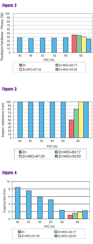 Figure 2: Influence of PVC and Ratio of Zn Dust and MIO-Results of Pendulum Hardness (after 28 days)