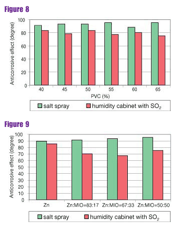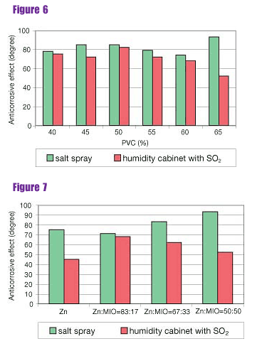 In tests of single-layer coatings and paint systems in two corrosive environments, it was found that a partial replacement of spherical zinc dust with micaceous iron oxide is advantageous from both an ecological and a cost perspective. The MIO positively influenced the adhesion of paints after exposure in corrosive cabinets.