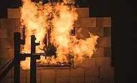 After the parts exit the coating booth, an operator attaches an alligator clip to the bottom of each part with a chain that connects them in a line. The chain and clip system prevents the parts from swinging into one another as they travel through the oven. The cure oven uses an infrared preheat section to sinter the powder so that it cannot be blown off in the convection portion of the oven.