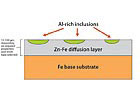 Figure 1. b) The thermo-chemical exchange of Fe, Zn and Al atoms facilitates the introduction of aluminum into the corrosion barrier.