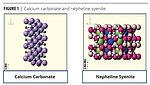 Feldspar is the mineral name given to a group of minerals distinguished by the presence of aluminum (Al) and the silica ion (SiO4) in their chemistry. This group includes aluminum silicates of soda (sodium oxide), potassium (potassium oxide) or lime (calcium oxide). Feldspar is the single most abundant mineral group on earth. These materials vary widely in chemistry, depending on local formation conditions. Some feldspathoids are silica free – e.g., nepheline syenites. Feldspars are igneous rocks. Figure 1 shows the structure of calcium carbonate and nepheline syenite. Table 1 shows the pigment properties.