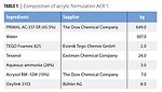 In this study we evaluated four formulations based on two acrylic (ACR 1 and 2) and two alkyd (ALK 1 and 2) emulsions. The formulations were chosen to cover different areas of application. Tables 1-4 list the compositions used in this study. The formulations are also available at www.buhlergroup.com/oxylink.